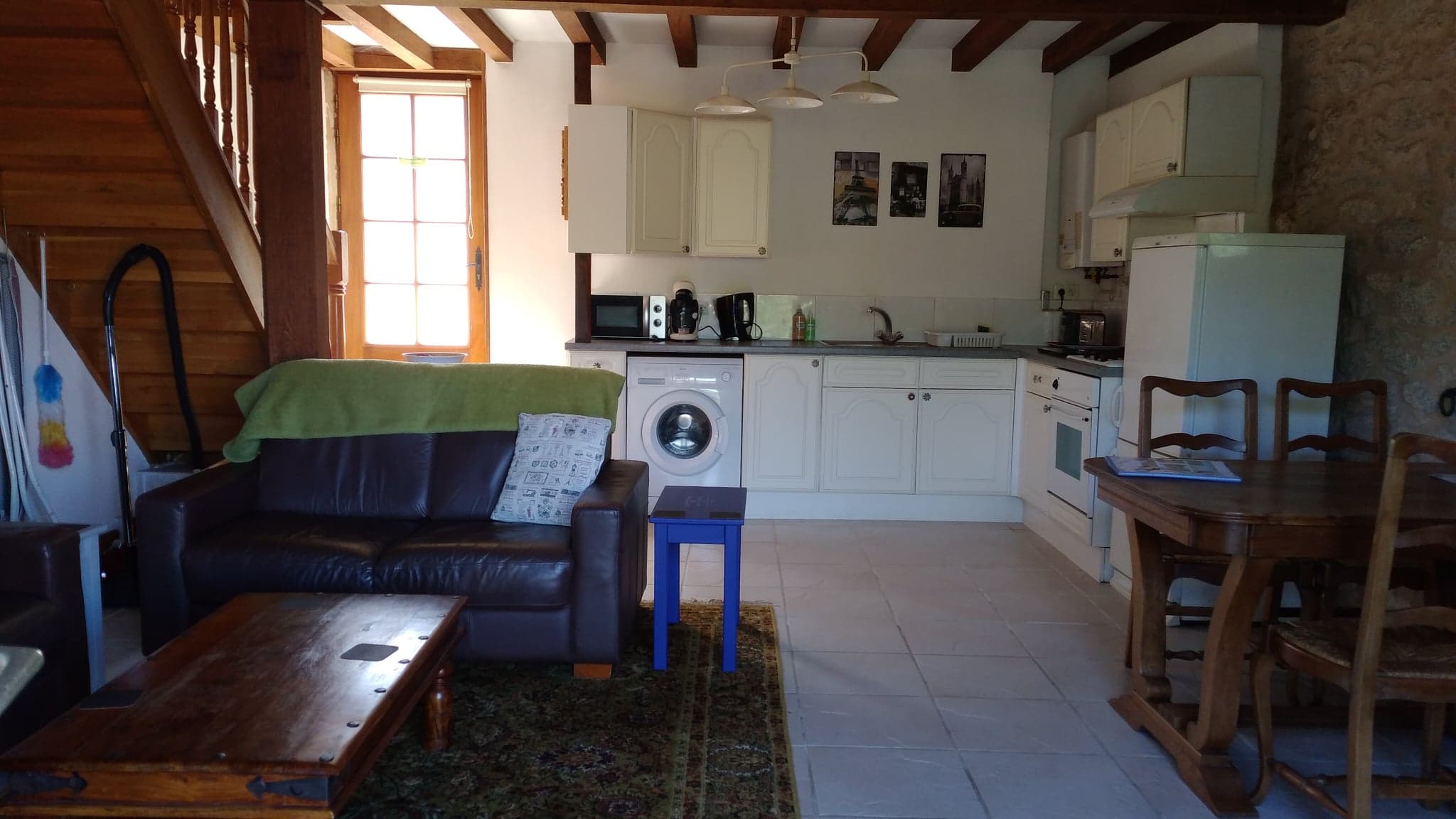 Inside: Wi-Fi, Washing machine, microwave, fridge, freezer, kettle, coffee machine, toaster, oven and hob, all your crockery, cutlery, glasses, mugs and baking dishes. Wood burner. Seating and dining space for everyone.